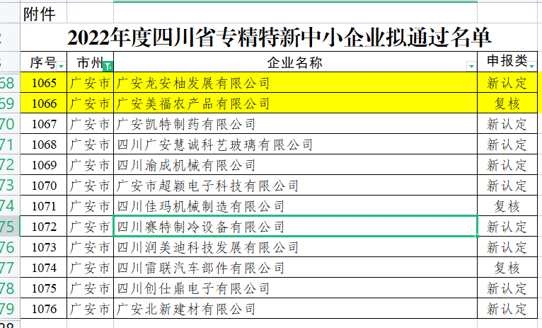 关于2022年度四川省专精特新中小企业拟通过名单的公示